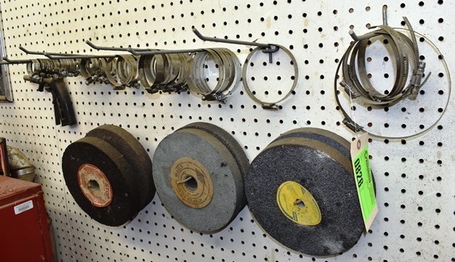 Large Lot of Hose Clamps and 6 Grinding Discs