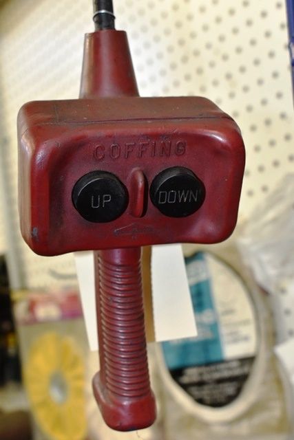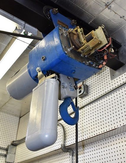 Eaton 2 Ton Chain Fall with Trolley, Needs Repair, Non Functional, Cover Included. Onsite Exclusive Rigger will disassemble and load on your trailer for the following flat fee: $50.00. No other rigger is permitted onsite.