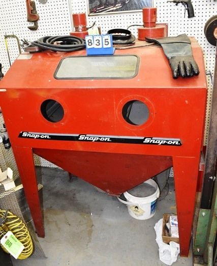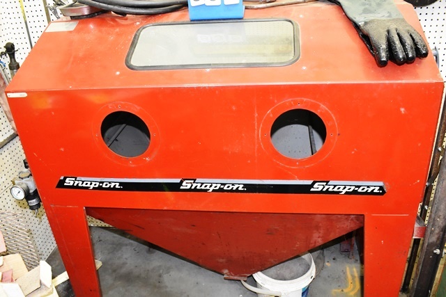 Snap-On Sandblast Cabinet with Gloves and Flanges. Onsite Exclusive Rigger will disassemble and load on your trailer for the following flat fee: $100.00. No other rigger is permitted onsite.