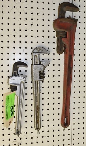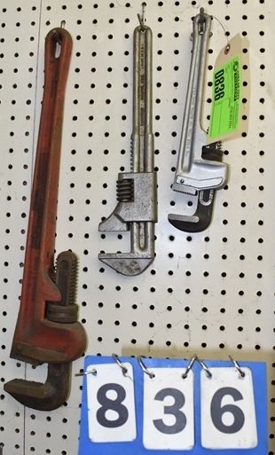 Lot of 3 Pipe Wrenches, Hacksaw and Puller