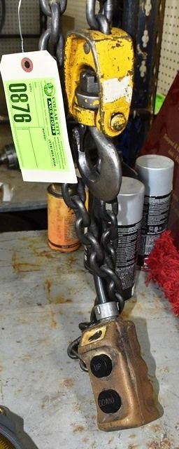 Right-Way Electric Chain Fall Believed to be 1/2 Ton, 110V. Onsite Exclusive Rigger will disassemble and load on your trailer for the following flat fee: $50.00. No other rigger is permitted onsite.